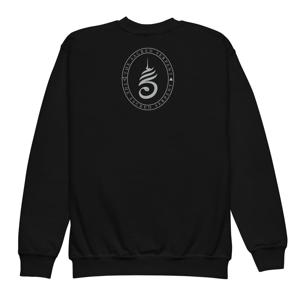 Gildan Youth Crewneck Sweatshirt - Temple Ornament print on front, Logo on back
